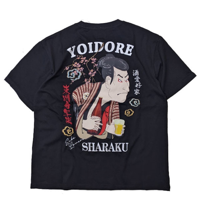 yoidore tシャツ 酒愛好家×東洲斎写楽 半袖Tシャツ 816515 酔いどれ YOIDORE ゆったりシルエット 刺しゅうとプリントのTシャツ