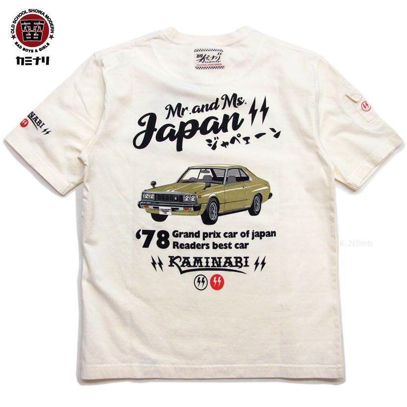 カミナリモータース tシャツ KMT-252 ジャパン 半袖Tシャツ エフ商会 メンズ 昭和の名車 旧車 レトロカーとロゴがお洒落