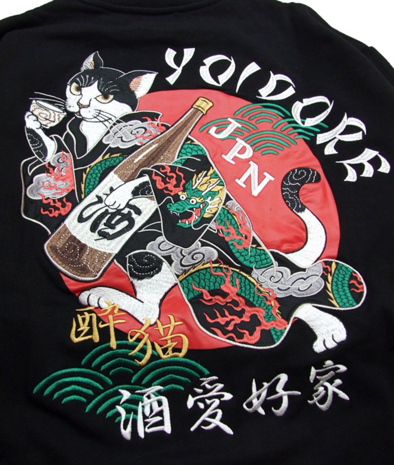 YOIDORE 酔いどれ メンズ長袖トレーナー 酔い猫 クルーネックスウェット ネコ柄 豪華刺繍 835205 和柄