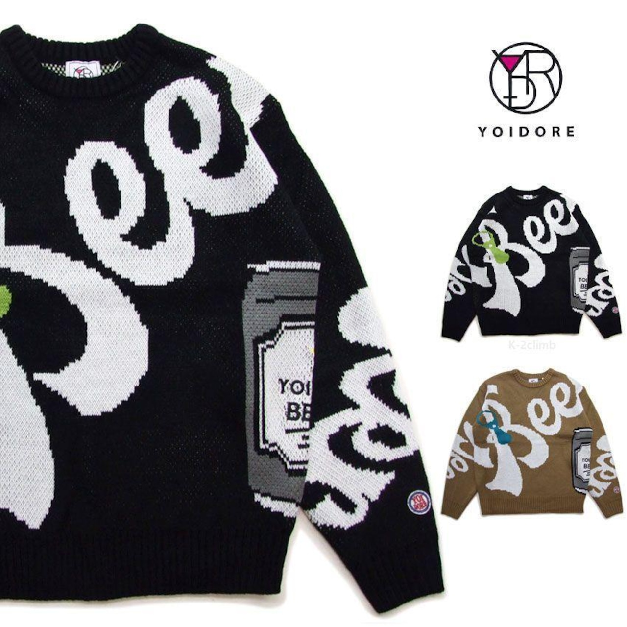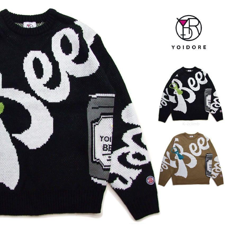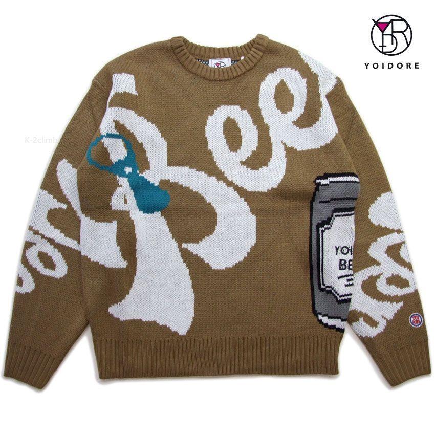 YOIDORE BEER ジャガードニット 中ジョッキ / M 835800 メンズ 長袖セーター ビールの文字が大胆レイアウトされたニットセーター