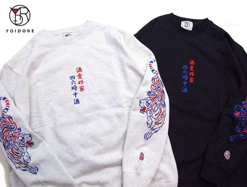 ヨイドレ 酒愛好家スウェット 四六時中 酒 クルーネックトレーナー YOIDORE 酔いどれ 総刺しゅう 裏パイル 835203
