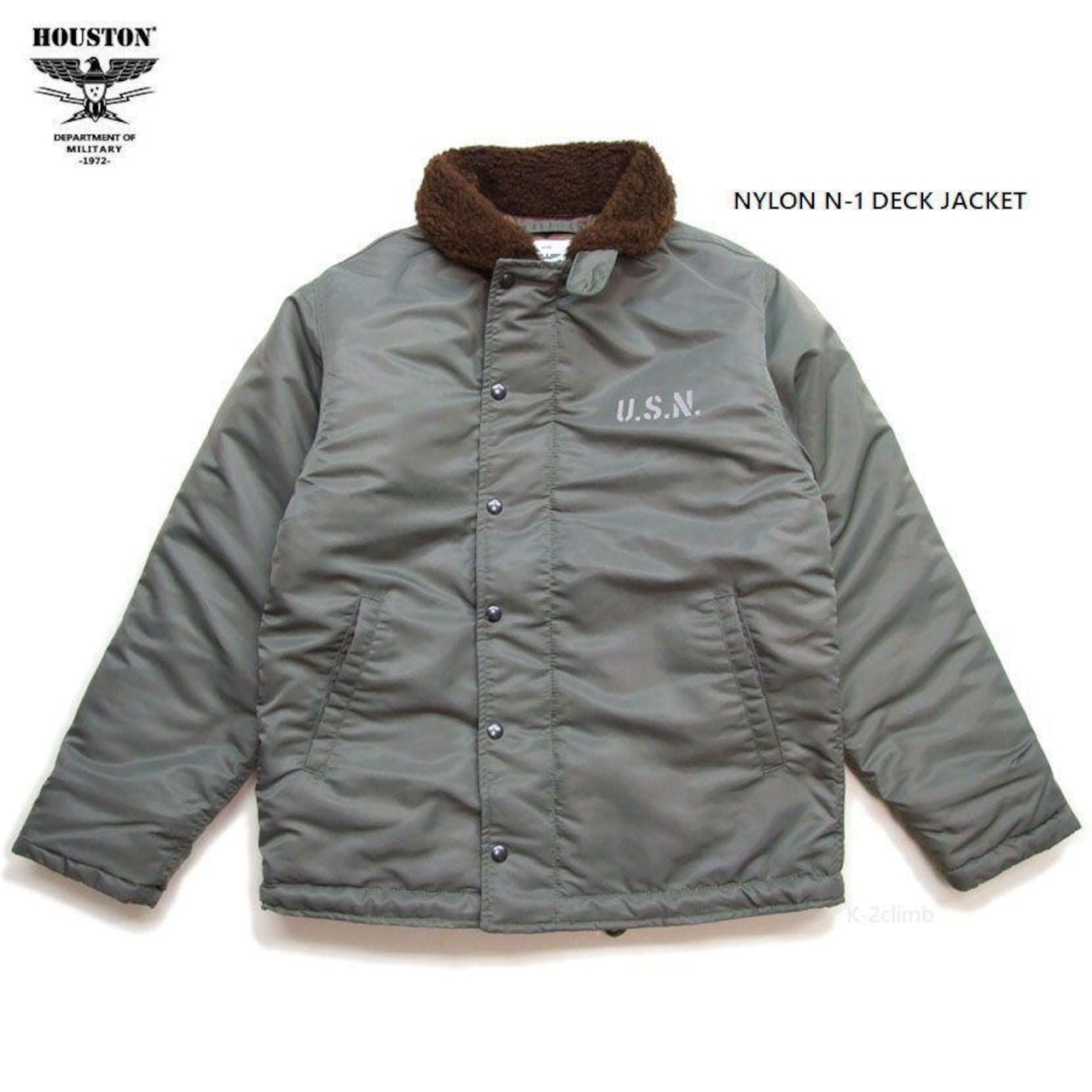 ヒューストン N-1デッキジャケット HOUSTON 襟ボア ナイロンジャケット 防寒 ボア襟がワイルド ミリタリー中綿ジャケット 袖リブ付き 51459