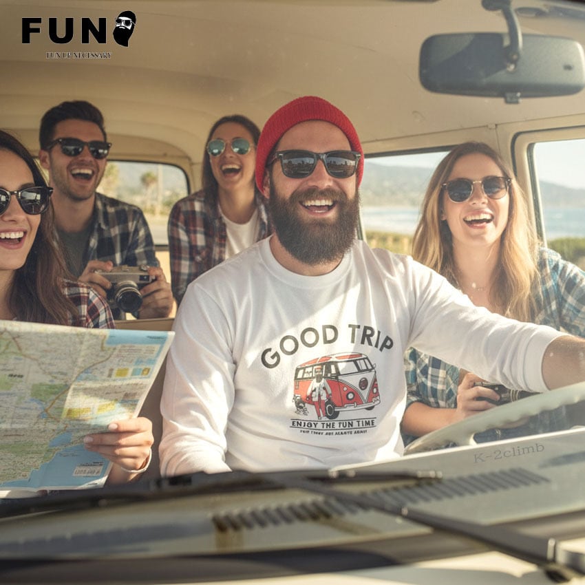 FUN ロンt メンズ おじさん 長袖Tシャツ ロングtシャツ ファン 25050562 レトロカー プリント レトロなバスで良い旅を UPNECESSARY FALL