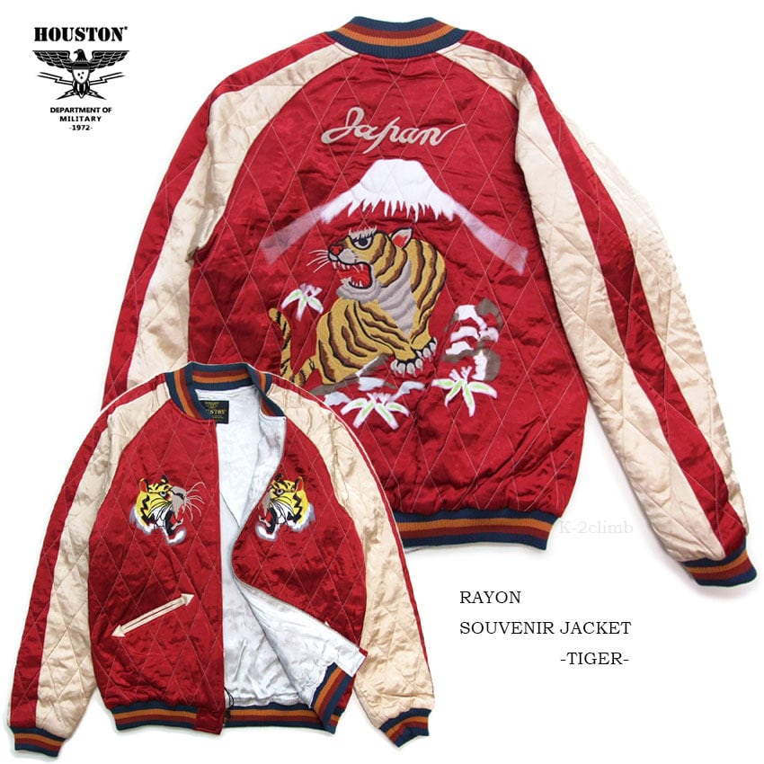 HOUSTONのスカジャシリーズで人気の高い虎柄を刺繍+プリントで表現した逸品