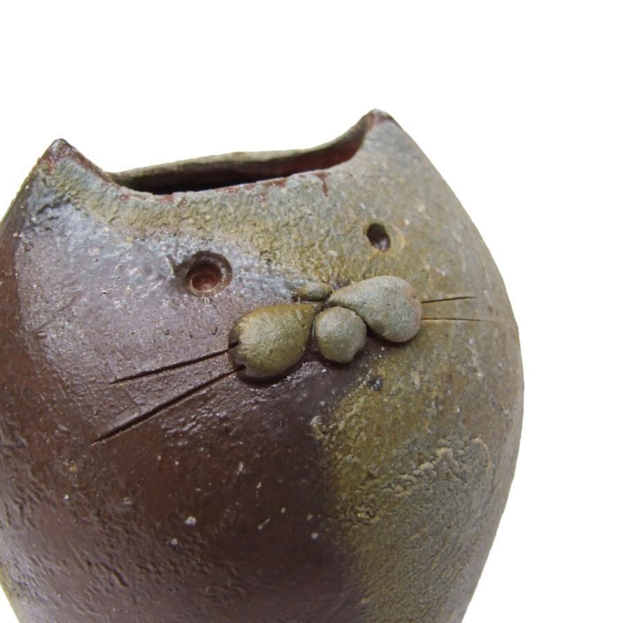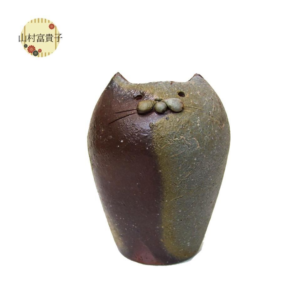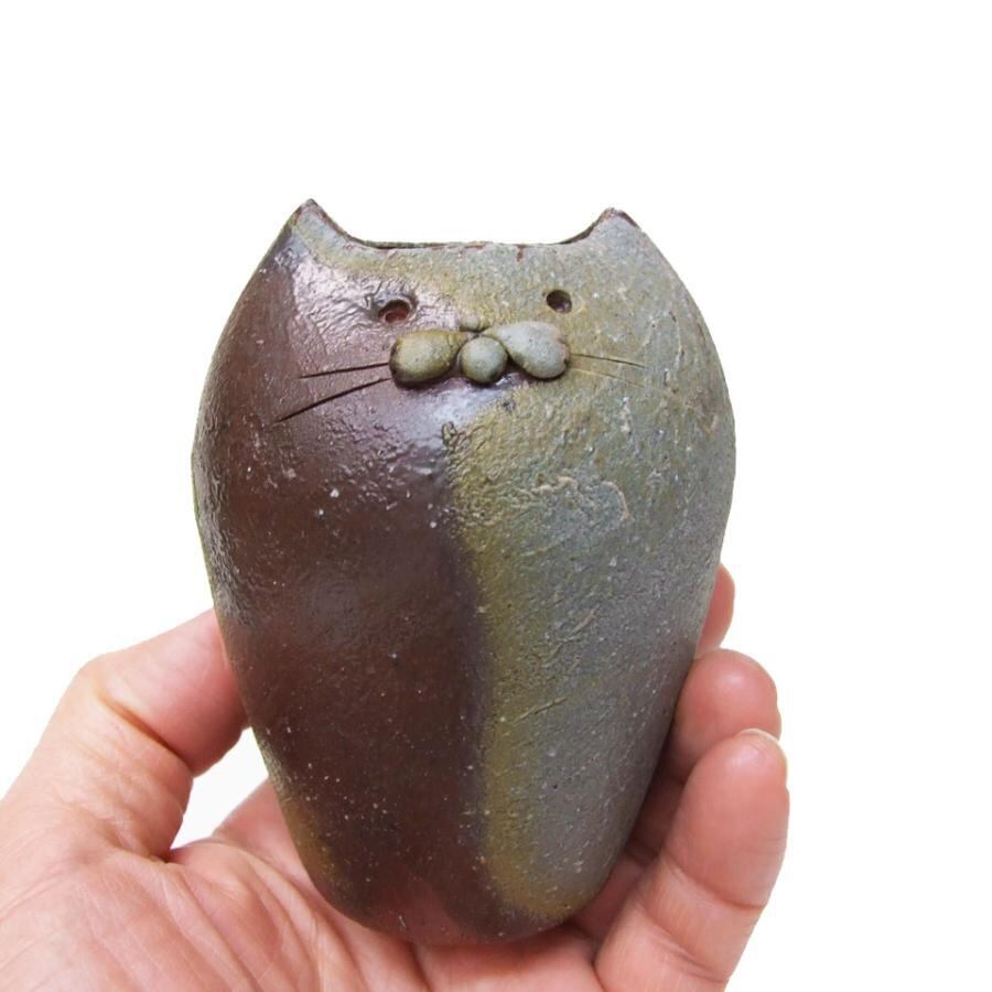 備前焼 花瓶 猫型 花入れ 一輪挿し◆登り窯焚き 作家 山村富貴子 24-y03 丁寧に造形された備前焼