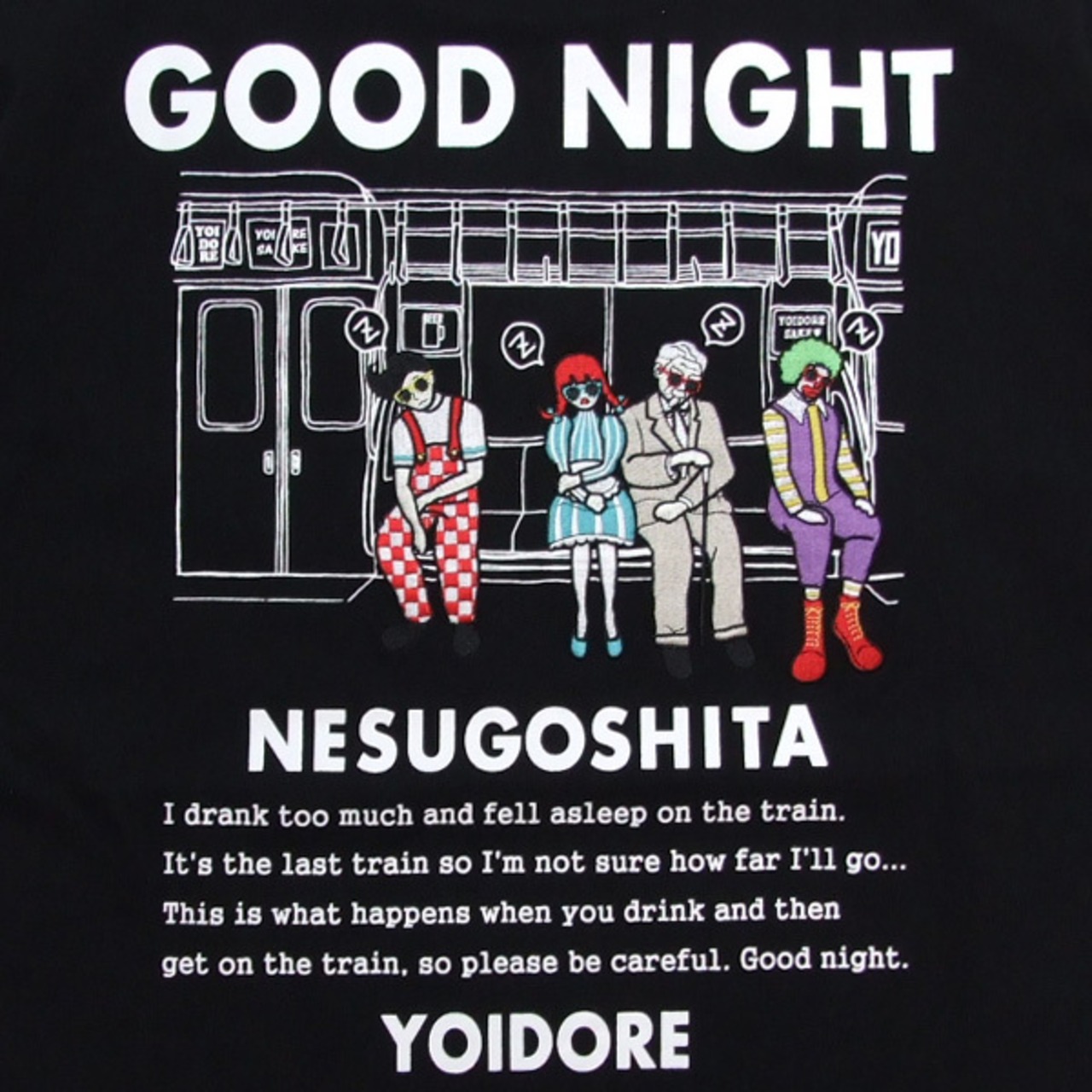 YOIDORE tシャツ 電車寝過ごすTシャツ ヨイドレ 酒愛好家にあるある 半袖Tシャツ 酔いどれ クルーネック カットソー 826202