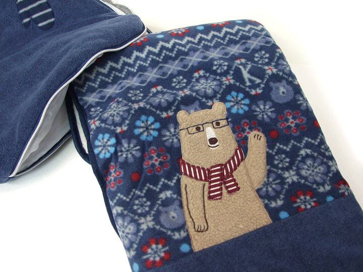 ファスナー付きで、中には暖かくてフワフワのキュートなブランケットが入っています。