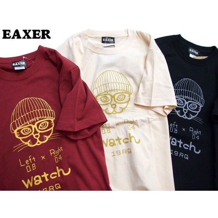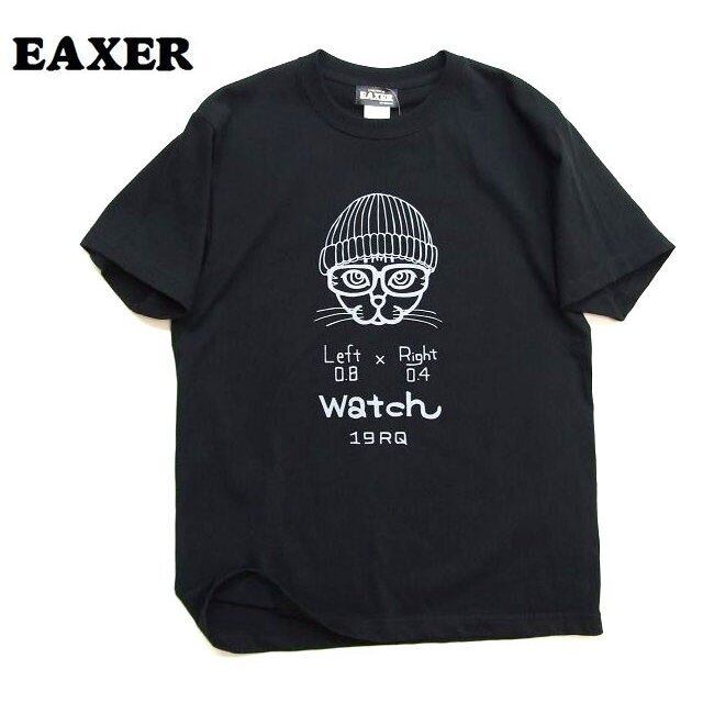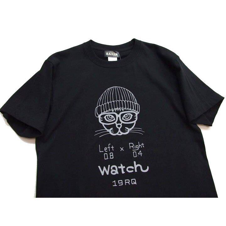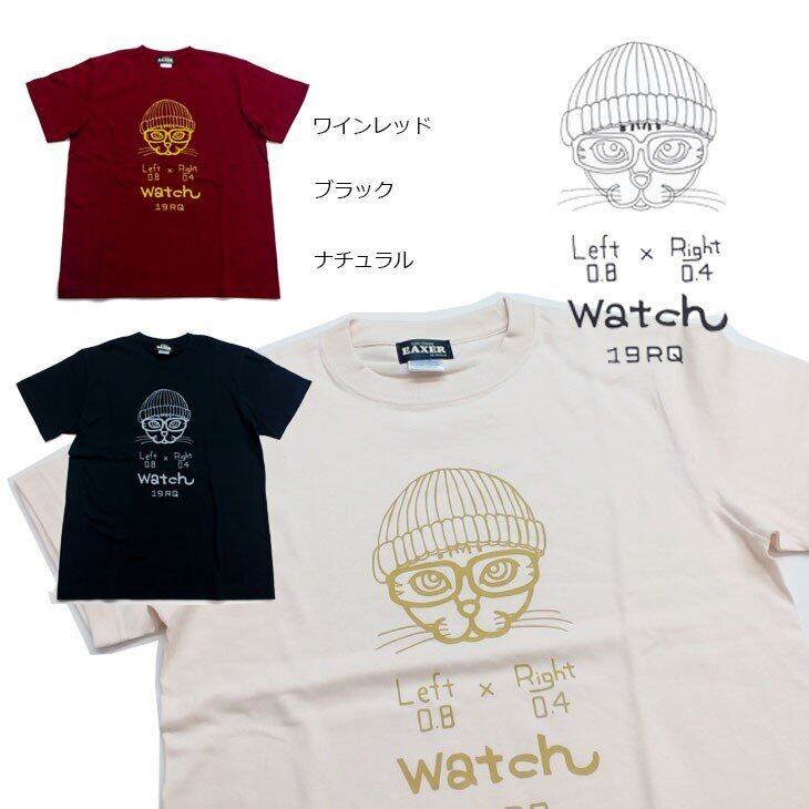 送料無料 ネコTシャツ 猫t EAXER ワッチCAT 半袖Tシャツ 男女兼用 半T KT-19001 メガネをかけてワッチを被った猫柄♪