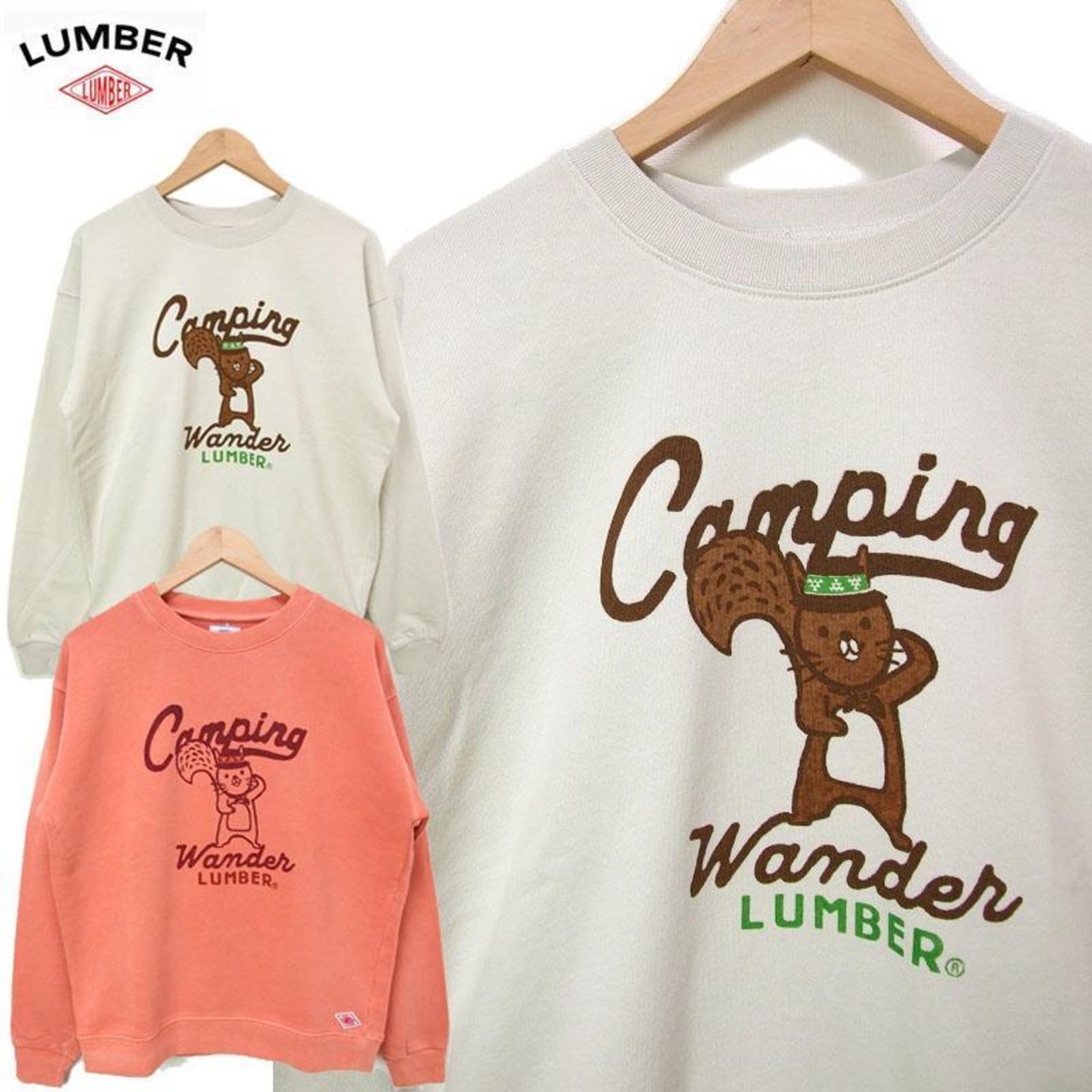 男女兼用 トレーナー LUMBER スウエット リス 長袖 lumber ランバー メンズ トレーナー 裏パイル 223393 お洒落なハットとスカーフが似合っているリス