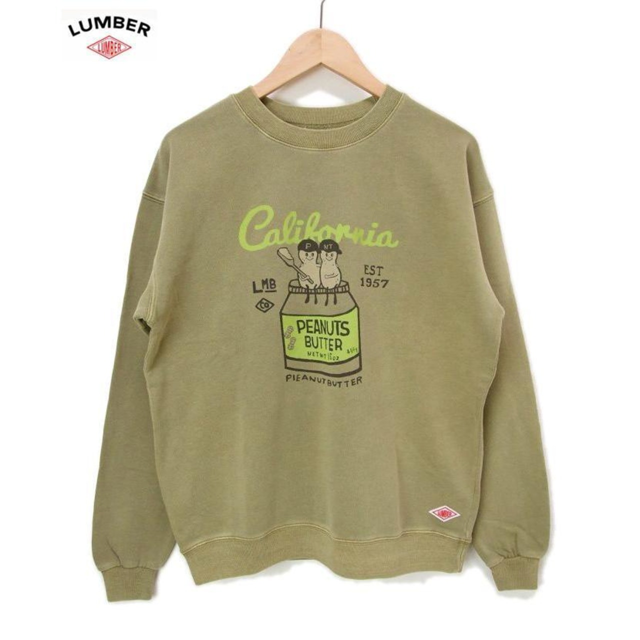 男女兼用 トレーナー LUMBER スウエット ピーナツバター 長袖 lumber メンズ トレーナー 裏パイル 223394 人気のピーナツ
