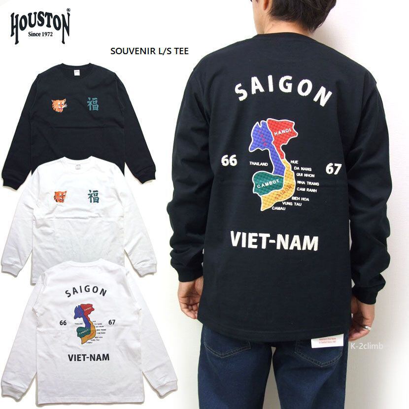メンズ ロングTシャツ HOUSTON ベトジャンモチーフ 虎 福 ヒューストン23AW ロンt 22153 マップ柄 カットソー