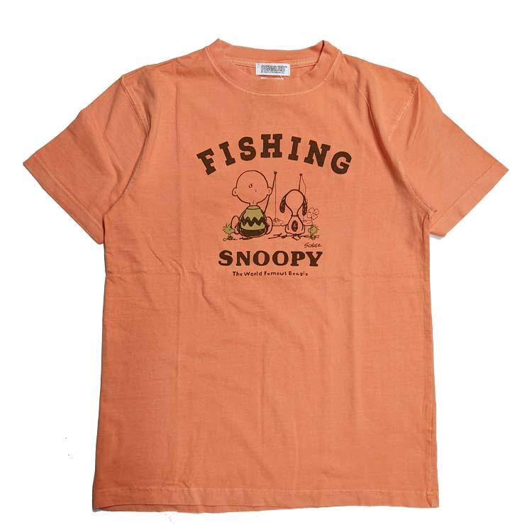 LUMBER 半袖Tシャツ スヌーピーと チャーリーブラウン SNOOPY-PRINT ×ランバープリントTシャツ 231625 並んでフィッシング