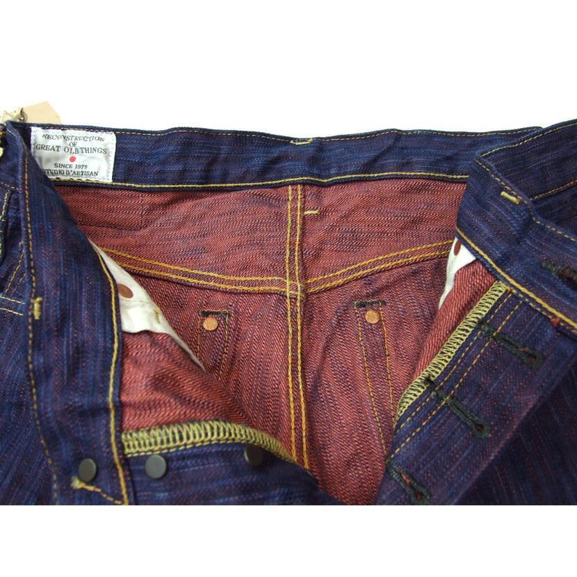 通常の機械染め15ozよりも太くムラ感のあるデニム生地となっています